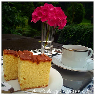 Castella cake Castella cake atau di Jepang biasa di sebut Kasutera cake. Terbuat dari telur, terigu, gula dan madu, dengan pemakaian madu ini makanya kue ini juga di sebut japanese Honey sponge cake. Ada banyak cara membuat castella cake ini, ada yang telurnya di kocok langsung hingga berjejak, atau dengan cara yang aku buat kemaren dengan memisahkan putih telur dan kuning telur. Dan aku juga memakai metode pengocokan “warm foaming” yaitu mengocok telur di atas air panas. Kenapa aku memakain metode ini, karena akan menghasilkan volume yang lebih bagus, juga stabil, dan merendahkan kemungkinan kue menjadi bantat. Kenapa aku sampai memakai 2 metode, ya karena aku ga mau kue ku gagal. Karena sponge cake ini tidak memakai bahan pengembang sama sekali, alias natural. Tetapi kuncinya di pengocokan telur yang bagus. Makanya untuk menghasilkan volume kocokan telur yang bagus apabila telur di hangatkan akan sangat bagus hasilnya di banding mengocok telur tanpa di hangatkan, kalian bisa buktikan sendiri. Tetapi kalau kalian mau memakai sistim warm foaming saja juga tidak mengapa, tidak perlu memisahkan kuning dan putih telur.