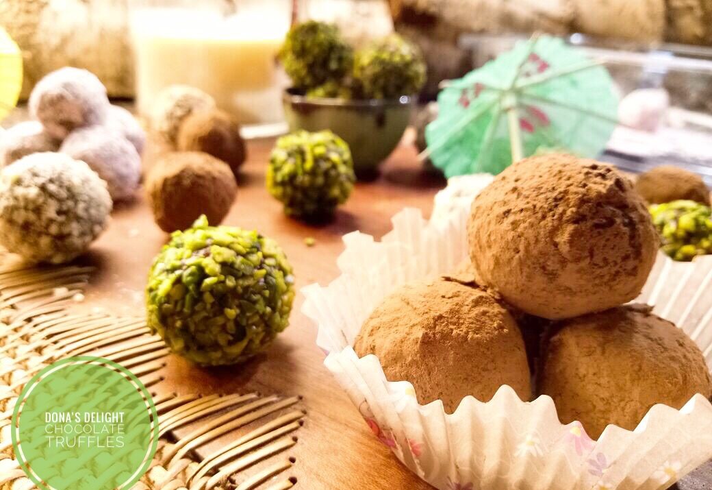 Paling malas tuh kalau bikin makanan yang sebetulnya bisa kita beli dan enak sekali, jadi kita ga perlu repot-repot bikin.  Kayak chocolate truffles ini, di Swiss tuh kan gudangnya coklat, jadi segala macam truffles ya ada, tinggal beli ga perlu repot dan terjamin keenakannya. Cuma yaitu, kalau di pikir-pikir sebetulnya boros juga ya kalau kita selalu beli yang sudah jadi, sedangkan kalau bikin sendiri itu mudah sekali, paling waktu kita aktiv bikinnya ga sampai 1 jam dan biaya beli bahan-bahannya bisa jauh lebih murah di banding beli jadi kenapa ga bikin sendiri aja? Ga tau resepnya? tinggal tanya google dan ratusan bahkan mungkin ribuan resep akan muncul, bikin bingung deh, karena komposisi dan jumlah bahan yang berbeda-beda. Seperti resep truffle ini bikin bingung karena ga ada satupun yang sama. Akhirnya tutup aja googlenya coba bikin sendiri, toh resep yang berseliweran berbeda-beda dan pasti ga akan bisa salah, seperti brownies aja, berapapun takaran coklat dan butter serta terigunya brownies akan tetap jadi hanya teksturnya yang berbeda. Nah kalau truffle ini sebetulnya hanya terbuat dari chocolate ganache, jadi berapapun komposisi cream dan chocolatenya insya allah akan tetap jadi ganache.  Dan akhirnya aku mencoba bikin ganache dengan takaran whipped cream yang berbeda, hasil akhir?.. aku tidak bisa membedakan hanya saja apabila pemakaian whipped cream lebih banyak akan menghasilkan lebih banyak truffles. Tapi mengingat iklim di Indonesia, aku pikir mungkin lebih baik aku berikan resep dengan pemakaian jumlah whipped cream yang lebih sedikit.