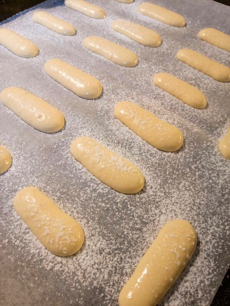 Lady fingers sebetulnya adalah sponge cake yang kering, berbentuk lonjong sekitar 5 cm, makanya di beri nama lady finger atau kalau di Italia di mana kue ini berasal di namakan Savoiardi. Rasanya sih biasa saja cuma garing dan lembut, lady fingers ini adalah salah satu komponen bahan yang sangat penting dalam pembuatan kue-kue seperti Tiramisu, Charlotte ataupun Triffle. Di luar negri ledy finger sangat mudah di temukan dan harganya pun relatif murah.tetapi apabila kita buat sendiri akan membuat kue-kue yang kita bikin terasa lebih luar biasa dan istimewa. Selain rasanya pun lebih enak, dan sudah tentu lebih sehat, karena tidak menggunakan bahan-bahan kimia. Dan kita bisa menambahkan rasa seperti rasa lemon dengan menambahkan parutan kulit lemon, sayang pas live baking kemaren aku ga punya lemon, jadi ga pake deh. Sebetulnya aku bisa saja beli lady fingers jadi dari supermarket, tapi rasanya kok kurang afdol ya, kalau ga bikin sendiri, selain bahannya murah juga selalu tersedia di rumah, dan ga banyak kok bahan yang kita perlukan. Jadi kenapa ga bikin sendiri saja?